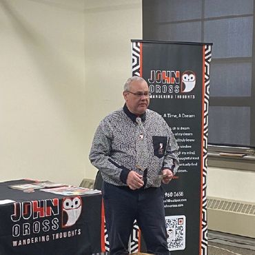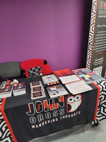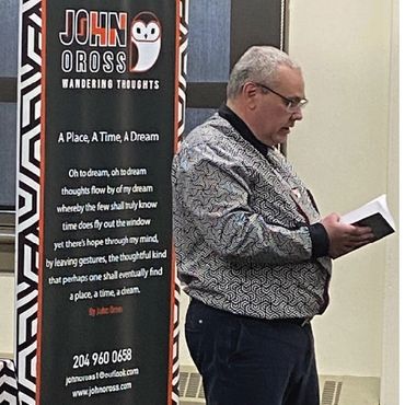 John Oross is an artist of many stripes and colours who believes in being loving, understanding, and kind. His goal is to instill those values in others by communicating his experiences through art. A former event planner and general manager of Xentel DM Inc, Oross retired from producing Oldtimers hockey games and Shrine circuses to concentrate on his mental health. He has been homeless four times, but he’s never given into despair. Oross played a cello in his youth and to this day can write lyrically against any melody that inspires him.